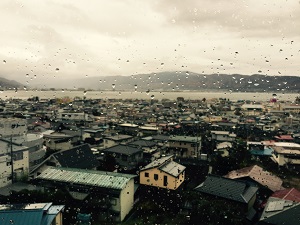 諏訪湖畔,細雨 四百年前,人家